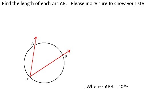 find the length of each arc AB. Please make sure to show your ste , Where <APB = 108°Â
