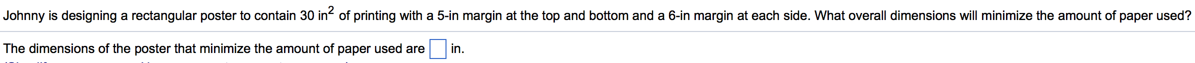 6​-in margin at each side. What overall dimensions will minimize the amount of paper​ used?
