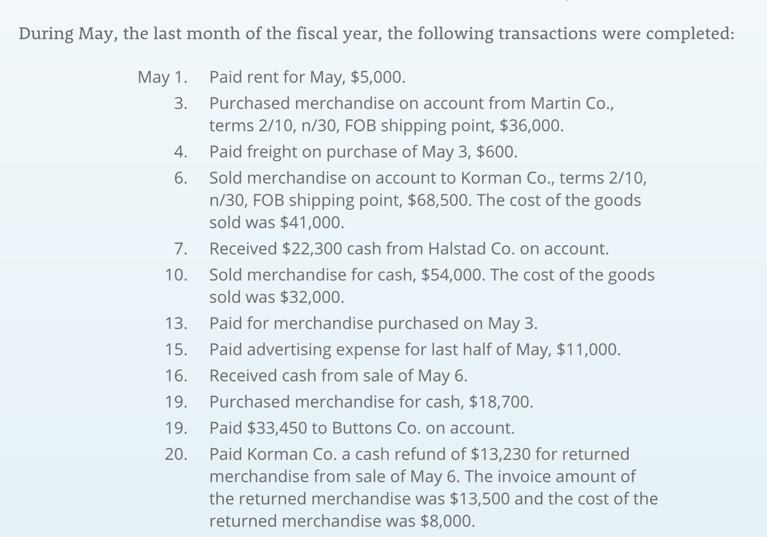 Step 2: Prepare the journal entries for the May1 through May 31 transactions. Now post the journal entries to the general ledger accounts (don't forget the post references).