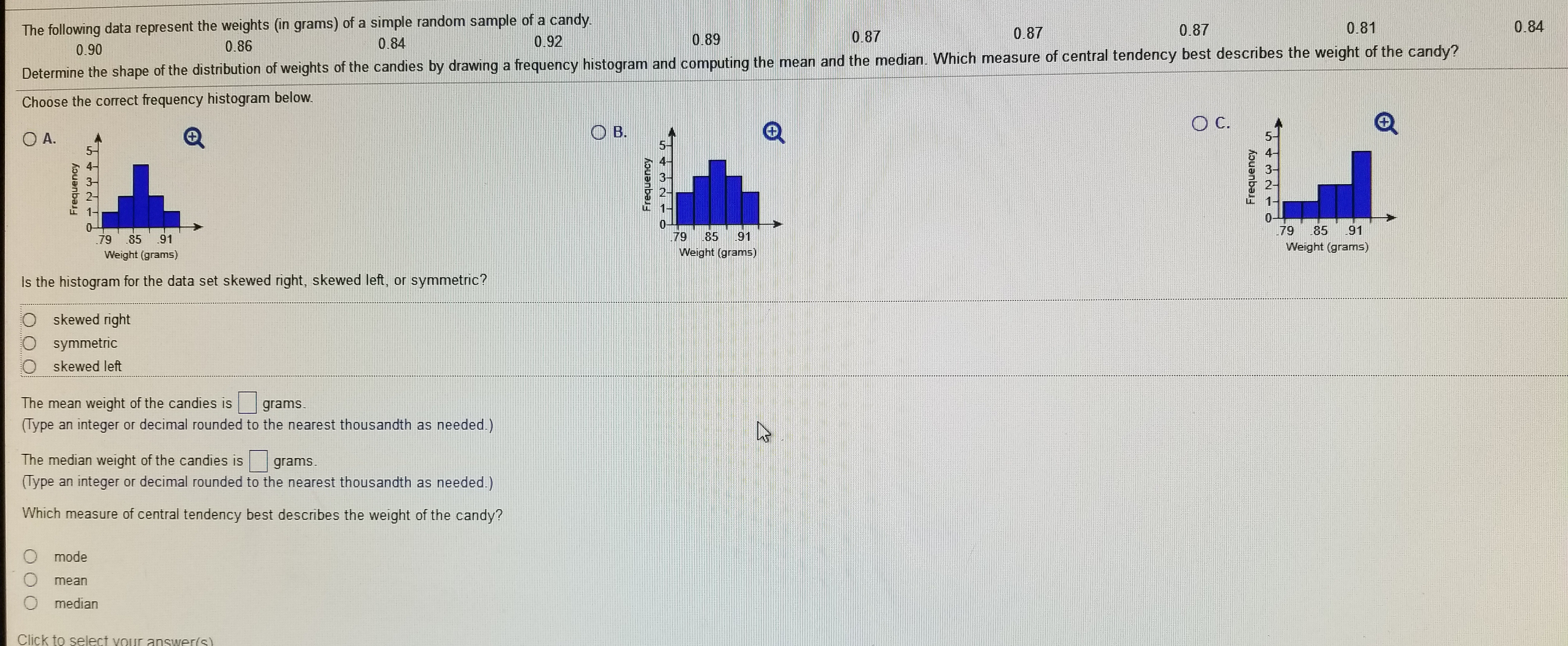 The following data represent the weights​ (in grams) of a simple random sample of a candy.