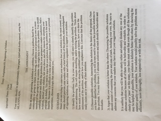 proposing a solution essay it needs to be double spaced please and written the same way in the syllabus