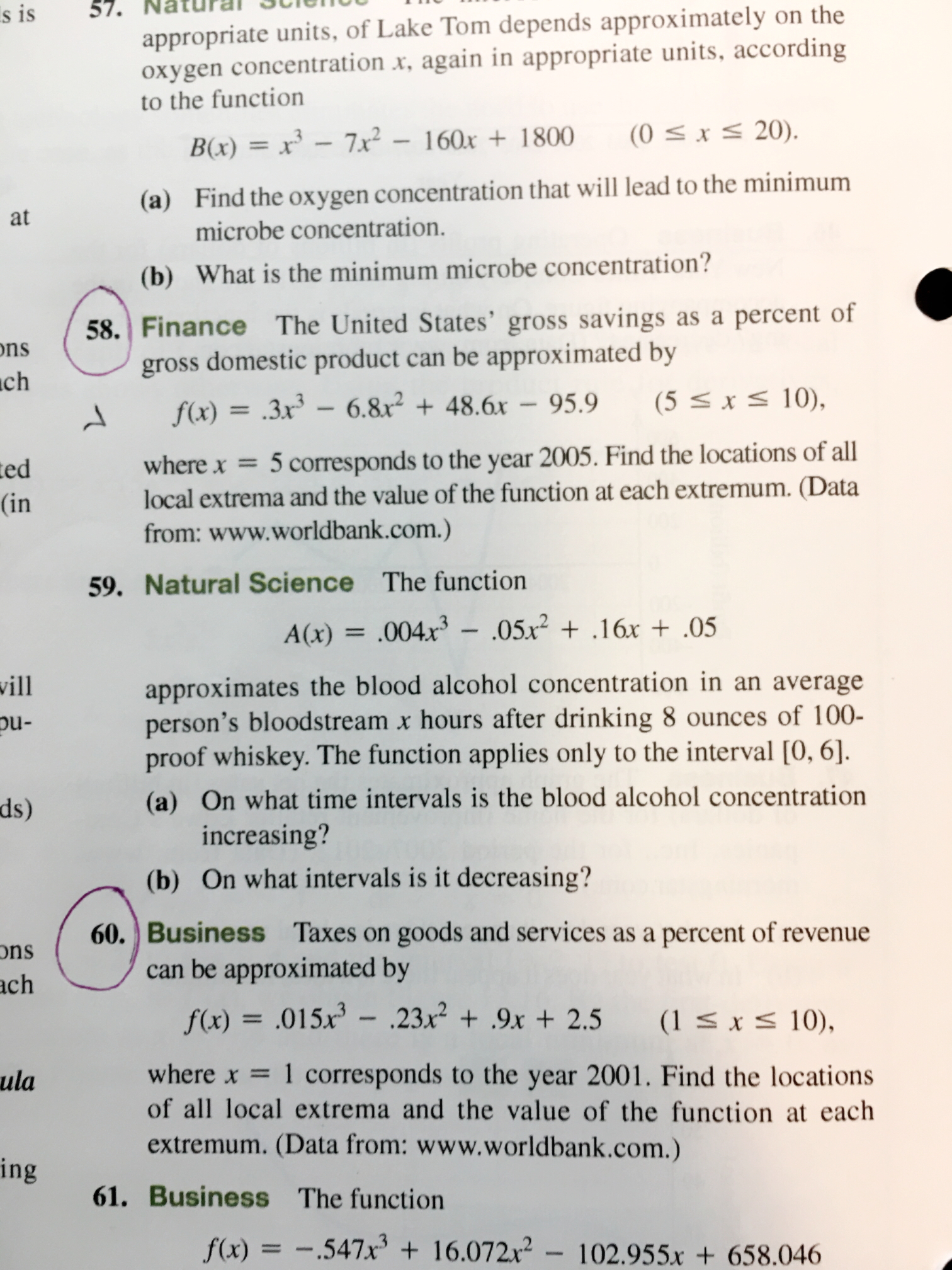 Explain the first derivative test and what it tells us about a function. Please go to the below file and then work the problem number 58 and 60 showing all steps.