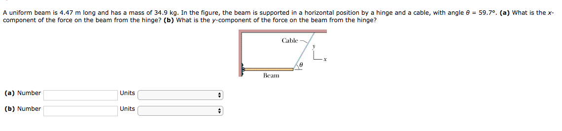 cemponent of the force on the beam from the hinge? (II) What is the y-component of the force on the beam from the hinge? a Number Unis A