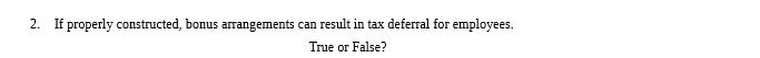 2. If properly constructed, bonus arrangements can result in tax deferral for employees. True or False?Â