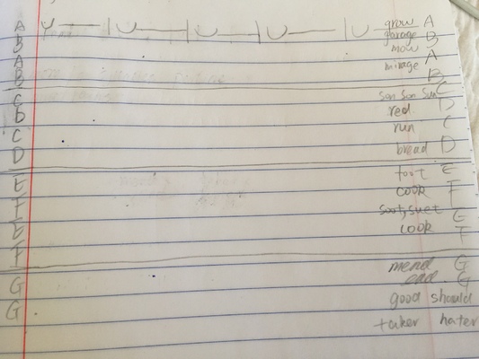 You can use any words about ABAB CDCD EFEF GG , not must use those words ABAB(grow garage, mow mirage) CDCD(son sun, red run bread) EFEF (foot cook, soot suet look) .  But words in GG you must pick one from there.(mend end, good should, taker hater)