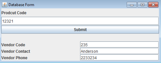 Divided into two parts. The first reads input from the user. The form then uses the user input to retrieve information from the database then display it in the other part of the form.