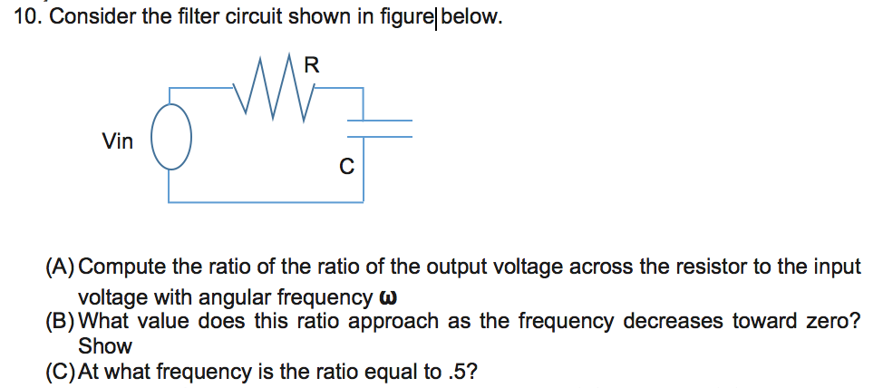 (A) Compute the ratio of the ratio of the output voltage across the resistor to the input voltage with angular frequency ω