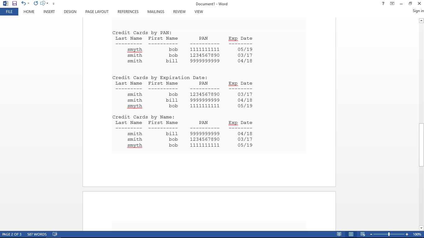 CreditCard. This class will model the key date elements of a credit card as shown. Note that in addition to the getter methods, there is a toString() method. This method will print our the last name, first name, PAN, and expiration date in a nice, format. Use the String.format() method to print this data in fixed fields.