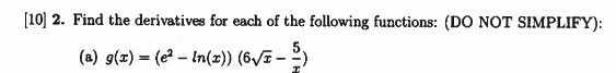 r Section(s) All except EC Pages 6 2 Course Examiner R. Raphael ned for all real numbers which has the property that >0. ving functions: (DO NOT SIMPLIFY): licit differentiation, and find the slope of the gaph a in the :2: is 0.2. 36. When the point is at (4, 9), its x coordinate is ;t is the y coordinate changing at that moment?