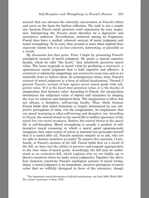 Ethicists can disagree on the paths to ethical truths. Blaise Pascal’s work, Pensées outlines his thoughts about that journey. He wrote, "The heart has its reasons which reason does not know." Review intuition in Wood's AXIOLOGY, SELF-DECEPTION, AND MORAL WRONGDOING IN BLAISE PASCAL’S PENSÉES. To what is Pascal referring when he wrote, “the heart”? How might this be a valid path to ethical truth? What advantages could this path have over reason or emotion?