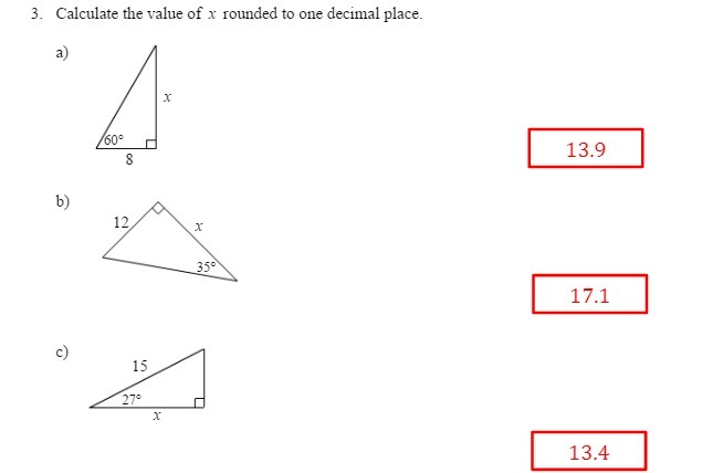 3. Calculate the value of X rounded to one decimal place. a) X 8 ' 13.9 b) 1., 12 X 17.1 c) 15 I X 13.4Â