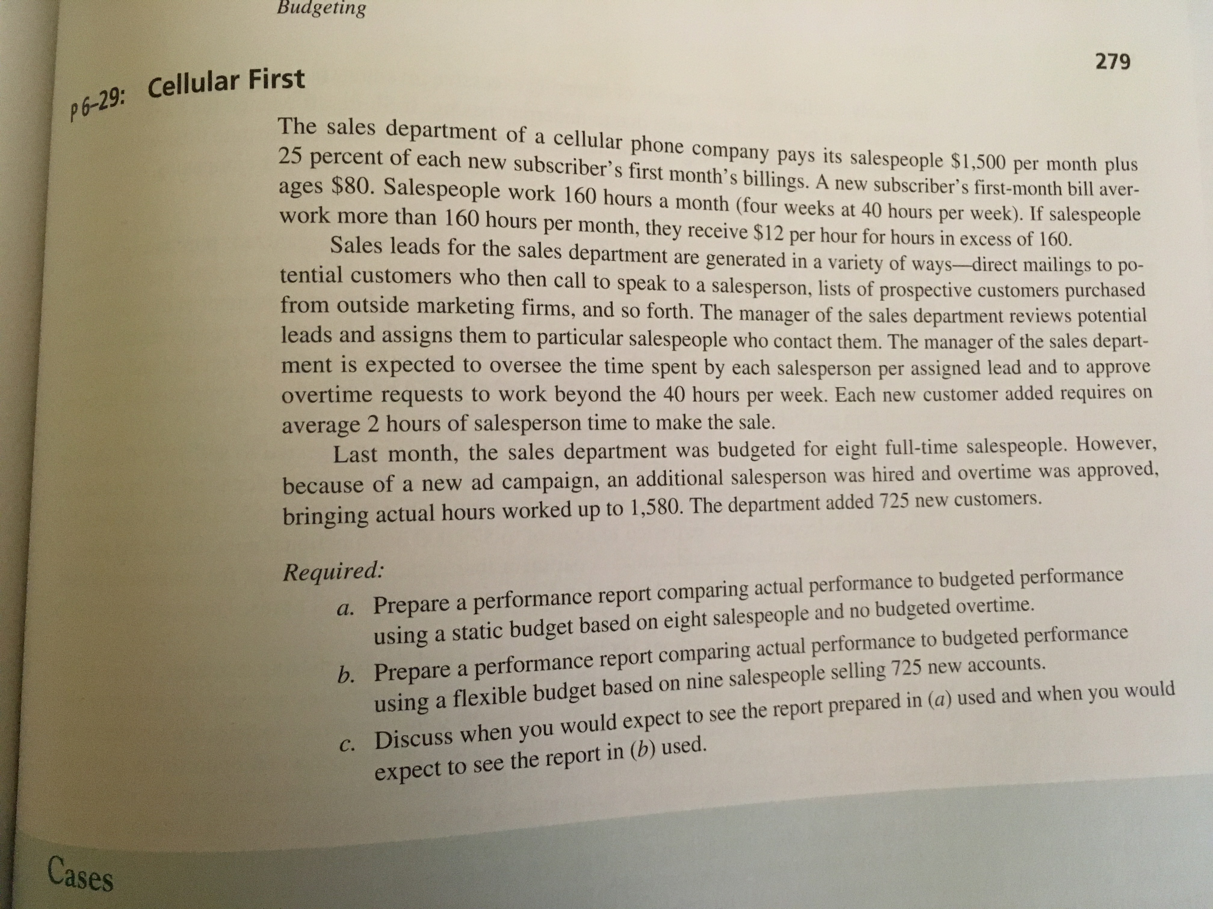 Complete all parts to Problem 6 - 29 (a-c) "Cellular First" found in your Accounting for Decision Making and Control text.Â