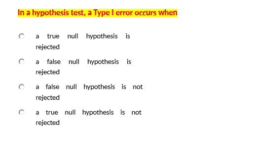 f“ a true null hypothesis is rejected f“ a false null hypothesis is rejected f“ a false null hypothesis is not rejected f“ a true null hypothesis is not rejectedÂ