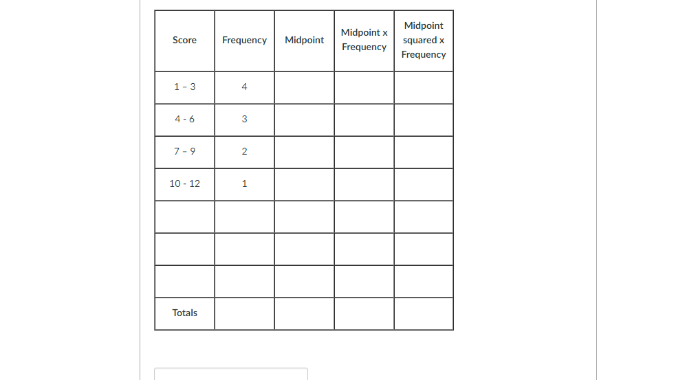 Use the frequency distribution table below showing a sample data set for 10 students on a test with a maximum score of 12 to find the standard deviation of the scores. (Round answer to one decimal position.)