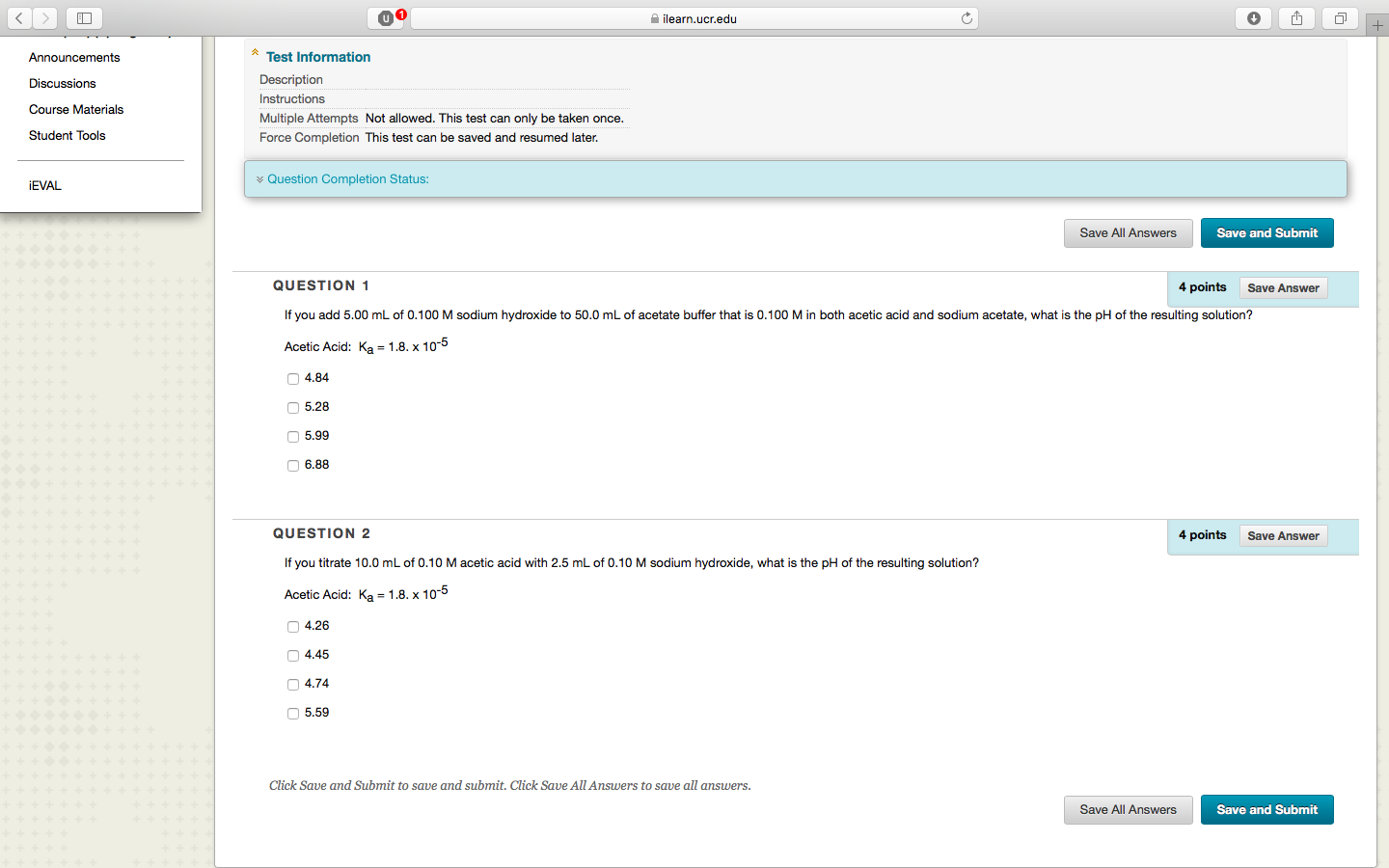 AcmicMid: Ka=1.e. ){1Cl'5 [3 4.26 [3 4.45 r: 4.74 C] 5.59 CfiukSauumdSubmitmsmIe imdmbmit. (fitkSauEAHAmm fumaflm. Save and Submit