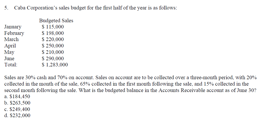 5. Caha Corporation’s sales budget for the that half of the year is as follows: Budgeted Sales