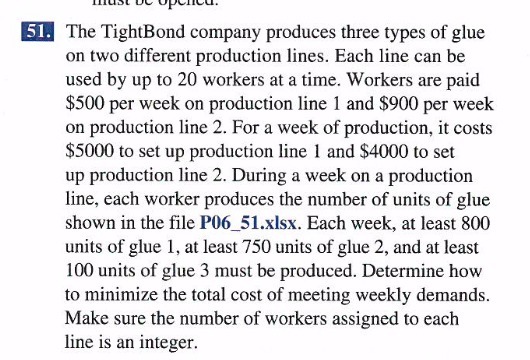 Attached: Question and file mentioned in the question (Ch 6_51 from Practical Management Science 5th Ed)