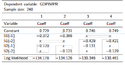(c) Use the logit model 3 of part (b) (with li1(-2) and li2(-1)) to calculate the predicted probability of economic