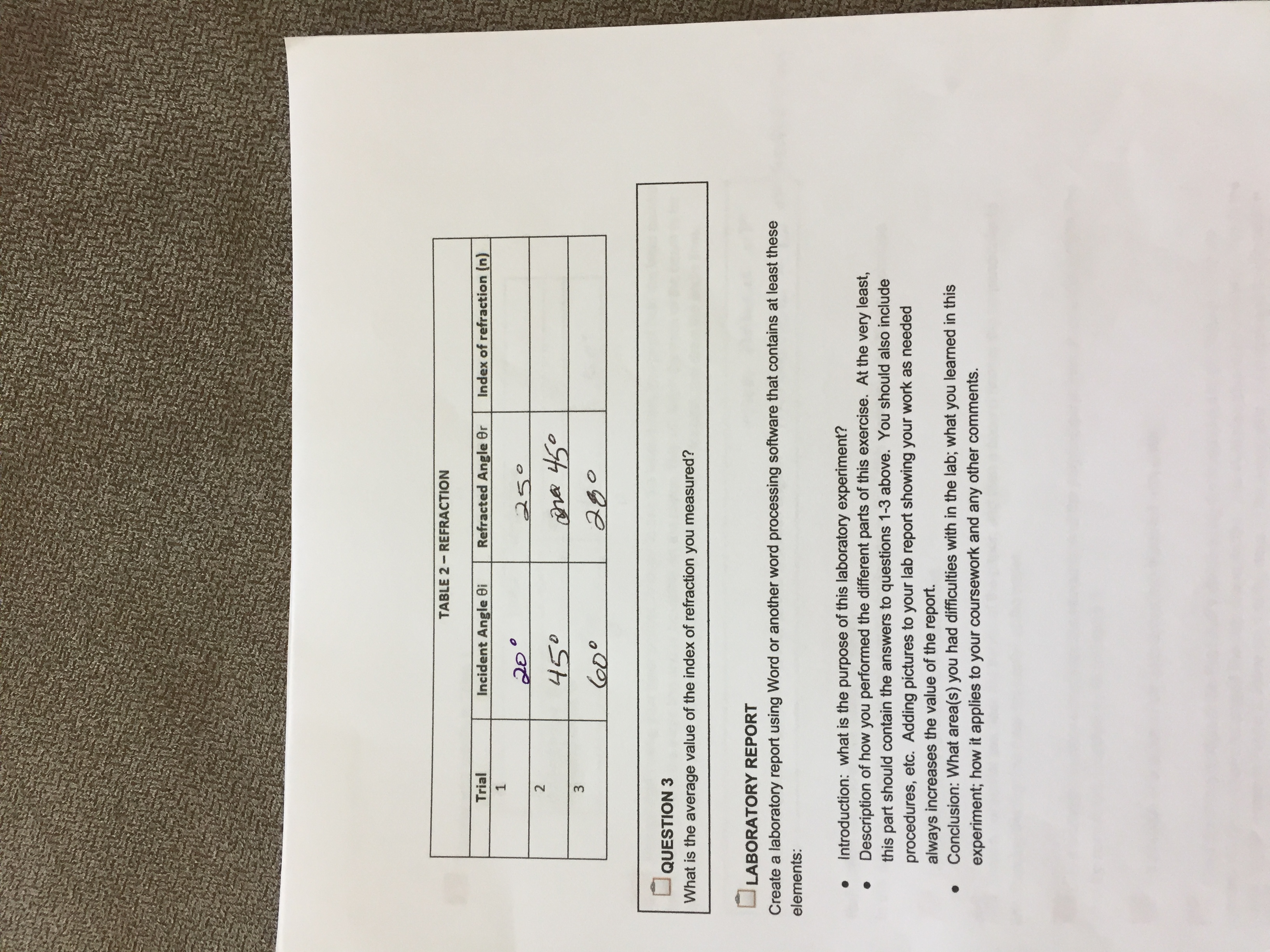 I do not understand how to calculate the math for the index of refraction and find the average value of the index of refraction. This is completely foreign to me.