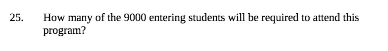 How many of the 9000 entering students will be required to attend this program? This text was automatically generated from the attachment. Please refer to the attachment to view this question.Â