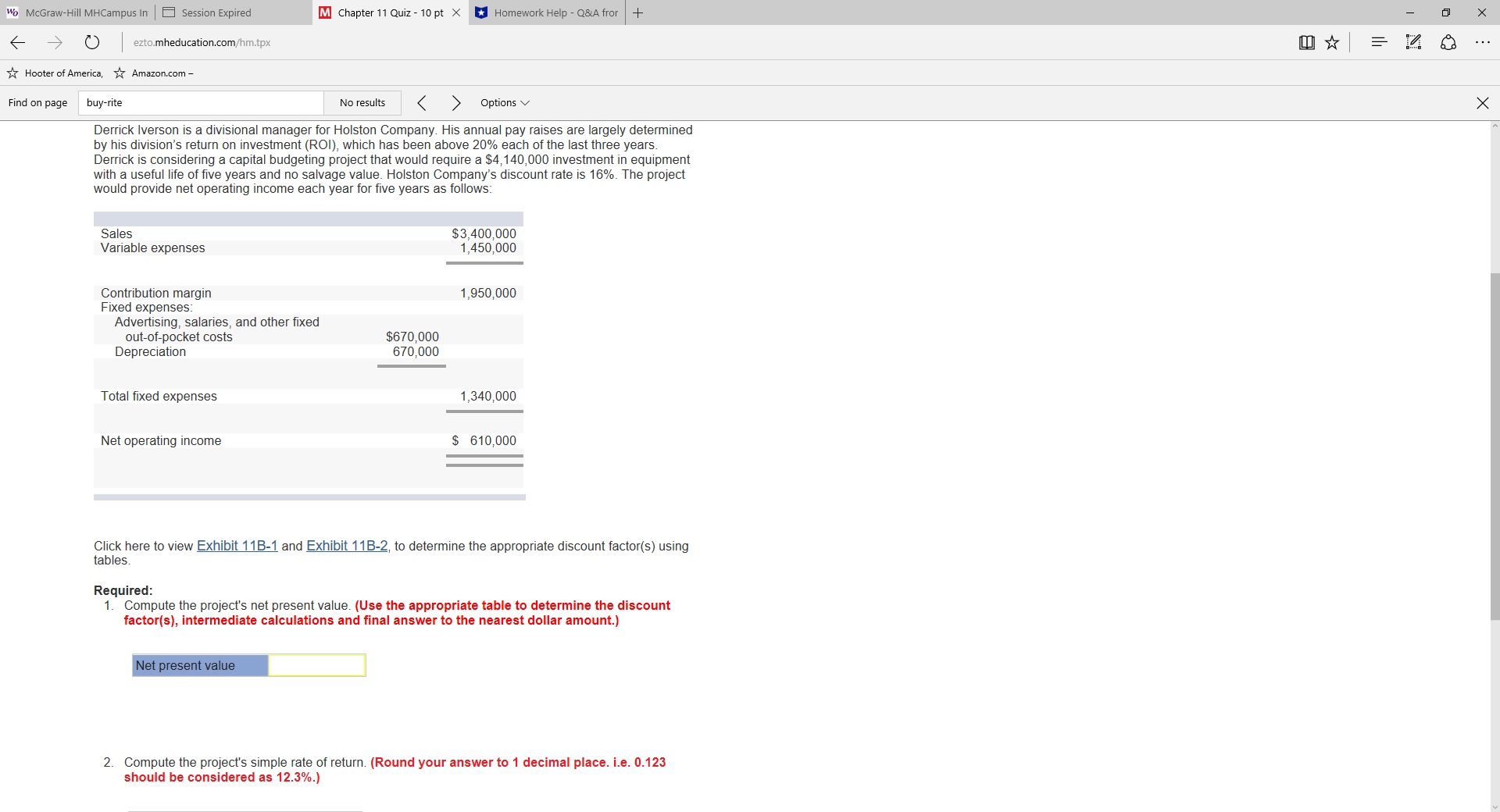 Net operating income 3 610,000 Click here to View Exhibit 1 1 5-1 and Exhibit 11E-2, to determine the appropriate discount tador(s) using
