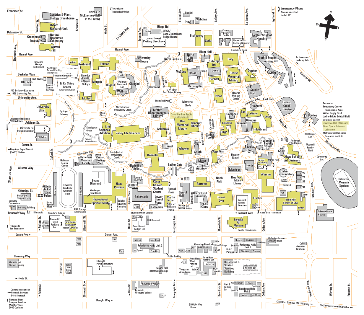 You can find their campus map http://berkeley.openbms.org/site-media/campusmap.png