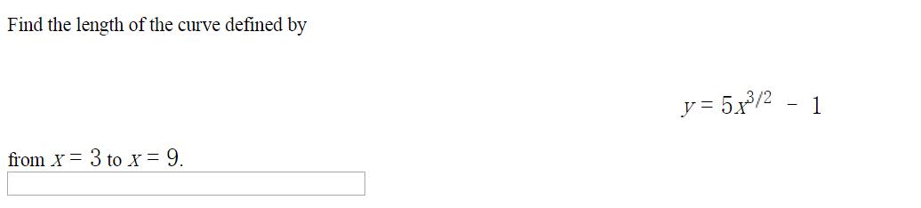 Find the length of the curve defined by y=5x^(3/2)-1 from x=3 to x=9