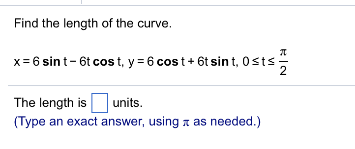 x=63int-6tcost, y=Gcost+6tsinL Ostsa The length is D units.