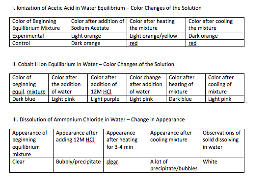 2. For the [CoCl4]2- /Co(H2O)6]2+ equilibrium, use Le Chatelier’s principle to explain the color change which you observed after the addition of distilled water to the equilibrium mixture. (This would be the II in the attached file)