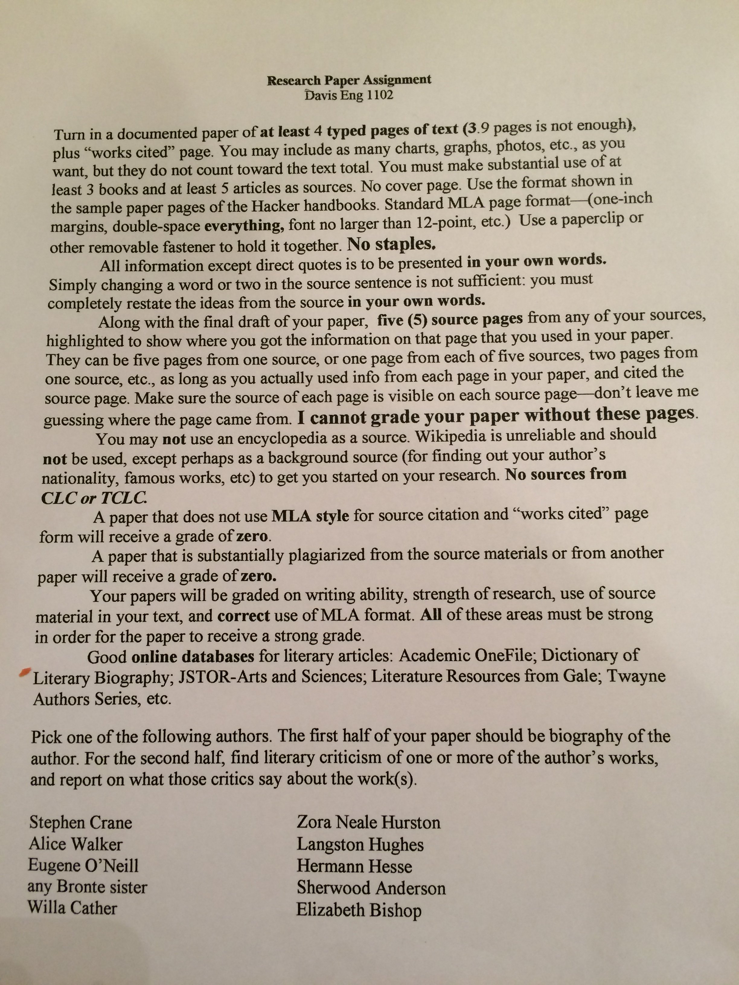 You finish my first research paper very good! I believe you can do the second paper good as well. The requirement of the second paper is the same as the first on. Just change another author. Thanks a lot. BTW, you could give my paper before 5 pm this Sunday.