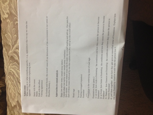 Hello, The above picture has the instruction and example of the value essay. Ignore the sentence which is the brackets. you will choose the topic Selfishness  as the topic which would be the main cause. so thesis would become _ causes us to value selfishness choose what causes us to value selfishness. then describe in each body paragraph  the sub causes related.