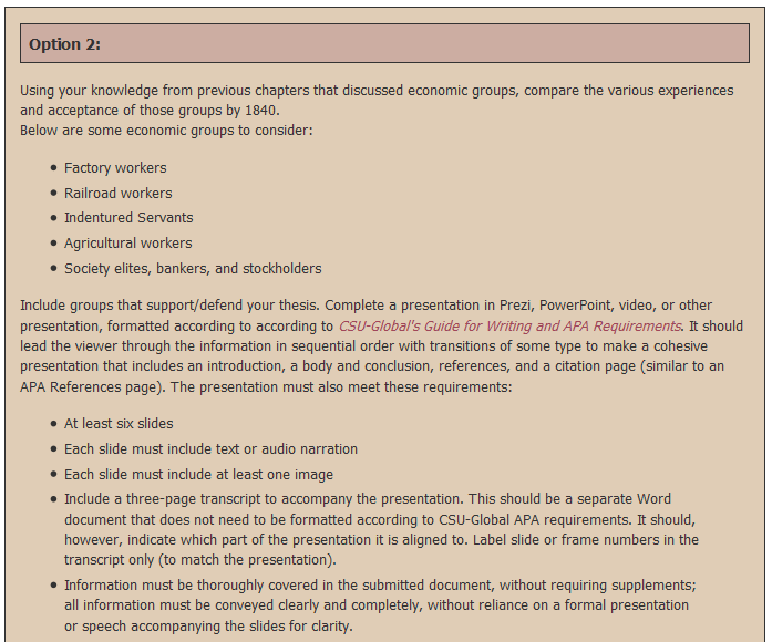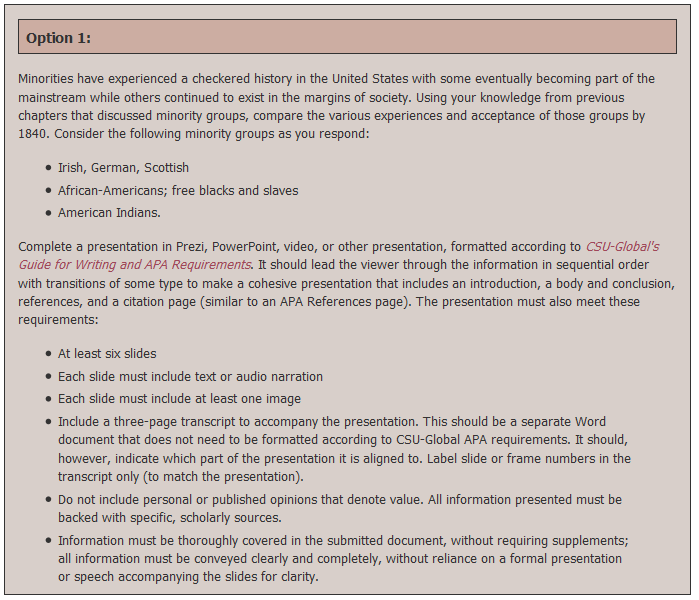 There are 2 options to choose from but only choose 1 to do please. The time frame is from Christopher Columbus finding the Americas to 1840