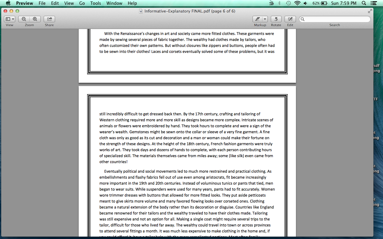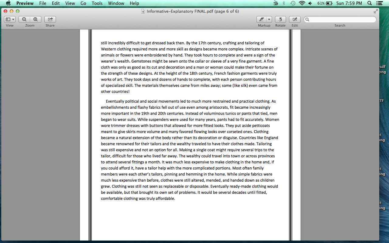 Write an informational essay on the relationship between clothing styles and developments in clothing creation. Your essay must be based on ideas, concepts, and information from the passage set.