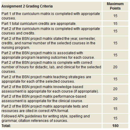 This week you will complete Part 3 of the course project, which is the BSN Course Project Matrix.