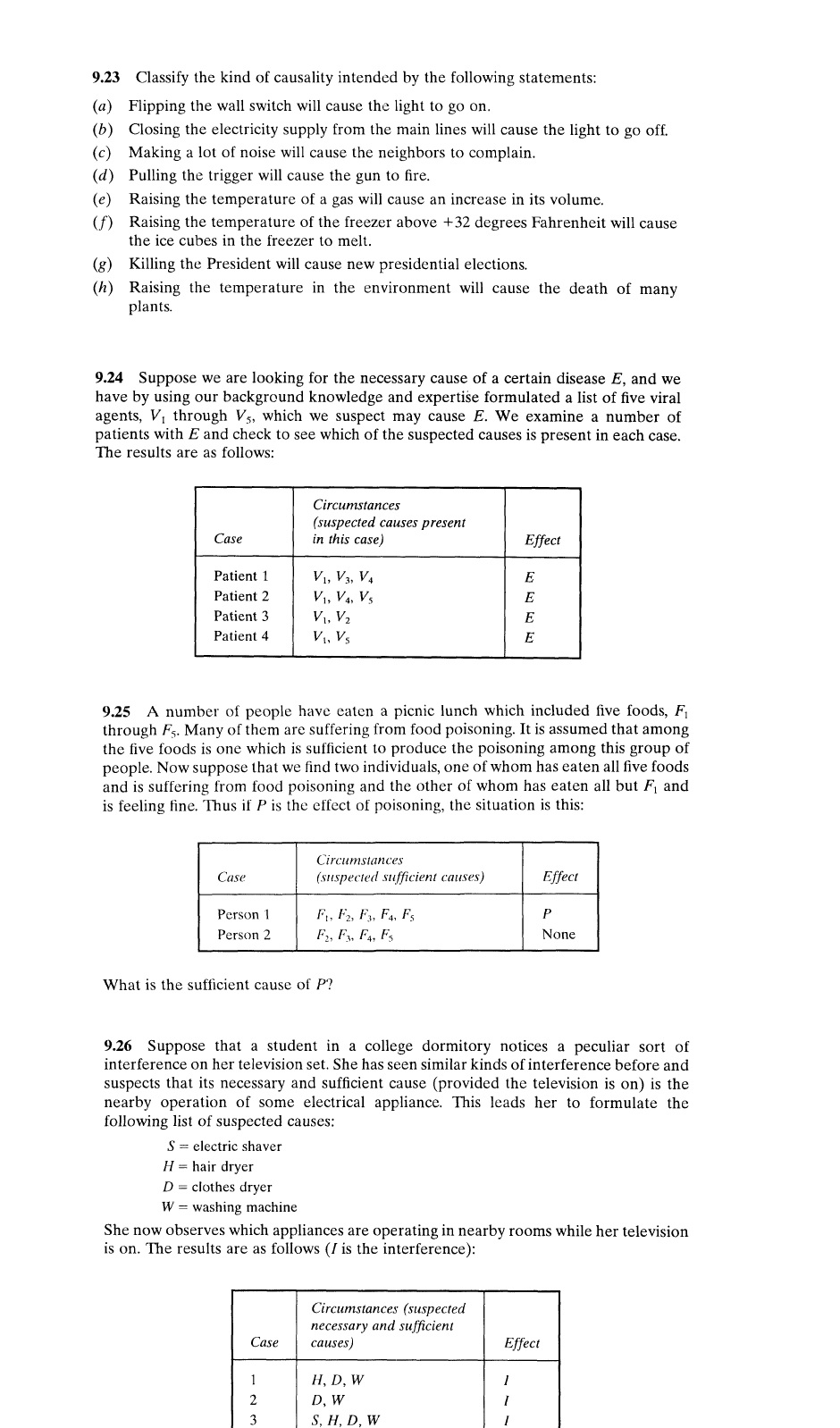 9.24 Suppose we are looking for the necessary cause of a certain disease E, and we