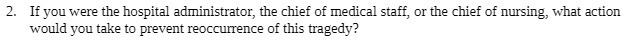 2. If you were the hospital administrator, the chief of medical staff, or the chief of nursing, what action would you take to prevent reoccurrence of this tragedy?Â