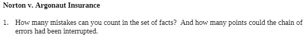 Norton v. Argonaut Insurance 1. How many mistakes can you count in the set of facts? And how many points could the chain of errors had been interrupted.Â