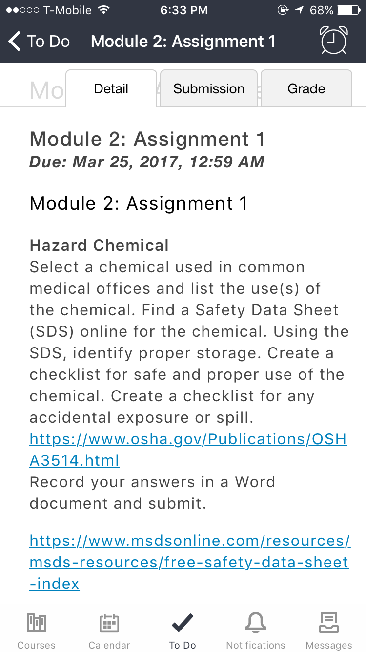Select a chemical used in common medical offices and list the use(s) of the chemical. Find a Safety Data Sheet (SDS) online for the chemical. Using the SDS, identify proper storage. Create a checklist for safe and proper use of the chemical. Create a checklist for any accidental exposure or spill