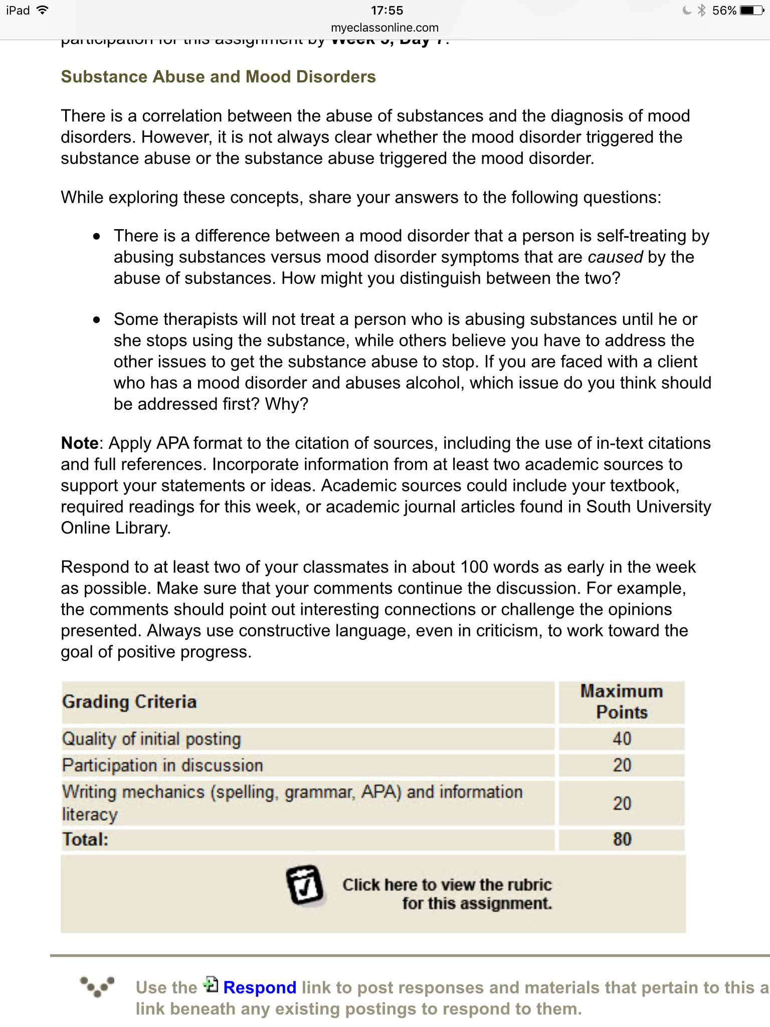 Quality of initial posting 40