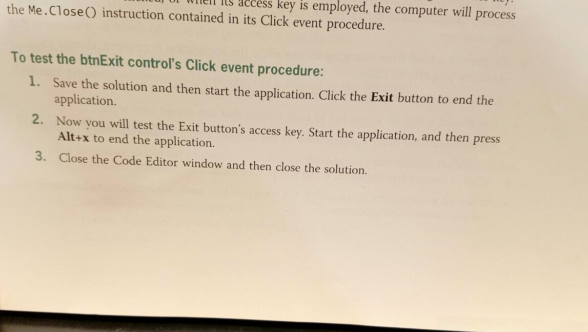 Save your application (in Visual Basic), test your btnExit control by using the procedure at the bottom of page 75 of your