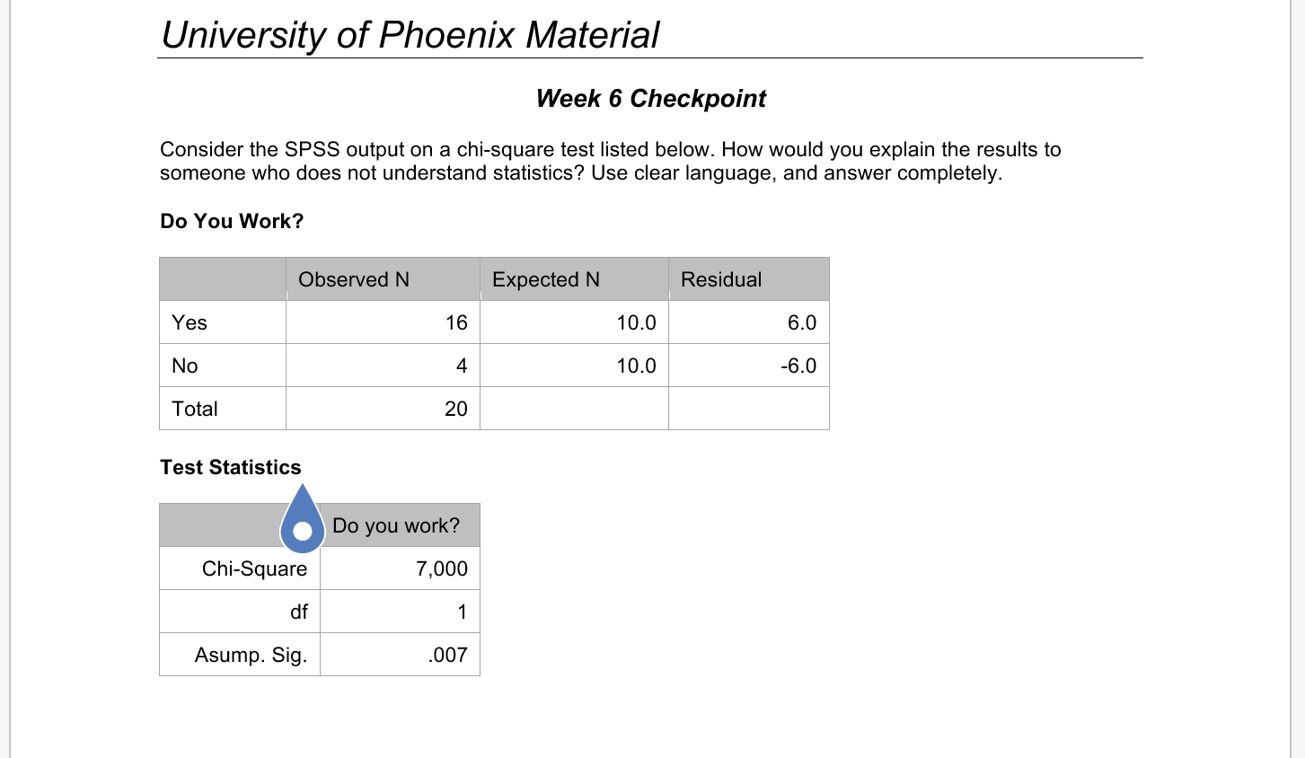 University of Phoenix Material Week 6 Checkpoint Consider the SPSS output on a chi-square test listed below. How would you explain the results to