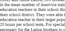 U1: )1 cuiu “one nation, vau U1UL11C1 in the mean number of inserVice trair education teachers in their school dis their school district. They were able t education teacher in their target popu 20 hours per school term. For special necessarV for the Lation brothers to cÂ