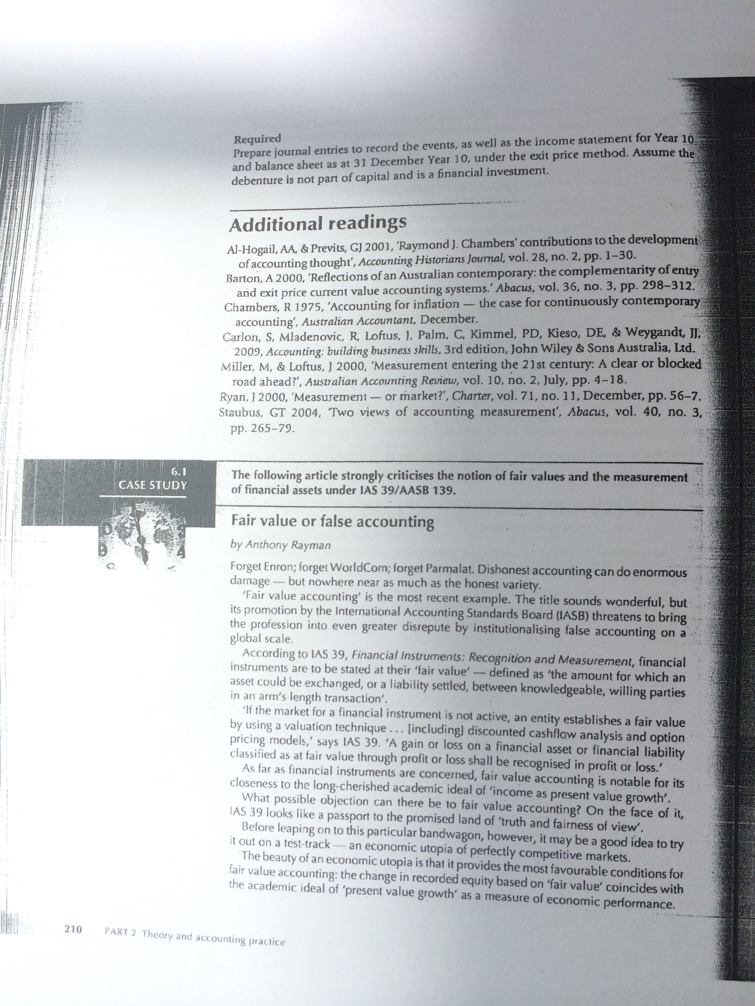 Case Study # 6.1 on pages 210-212 in Chapter 6 of your Textbook: Godfrey, Hodgson, Tarca, Hamilton and Holmes, 7th edition, 2010.