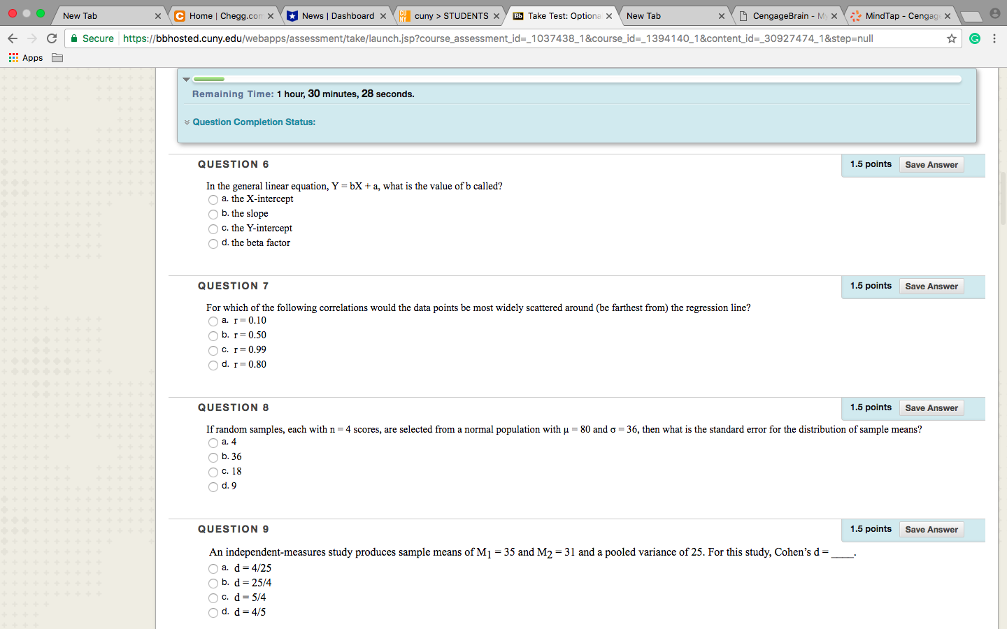 C n iii In Take Test: Options x (— a C I 3 Secure httpszflbbhostedmnyedufwebappsfassessmenmakellaunch.jsp?course_sssessmen1_id=_1037438_1&course_id=_‘l394140_1&contenLid=_30927474_1Estep=null fi‘ 8 v— fiemalnlnfl TIIIII: 1 mam 34 MI. vfluflmcempluflmm class. Given the variables that BIB included in this Study, whattype nfinfermtial Statistical test wnuld he appropriate?