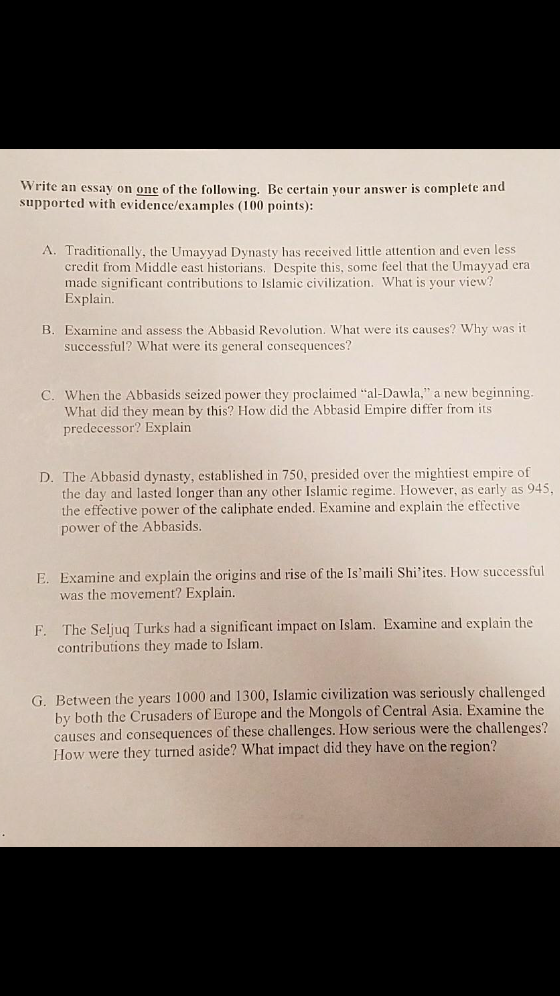 Please read the subject carefully and choose the best u can write about.