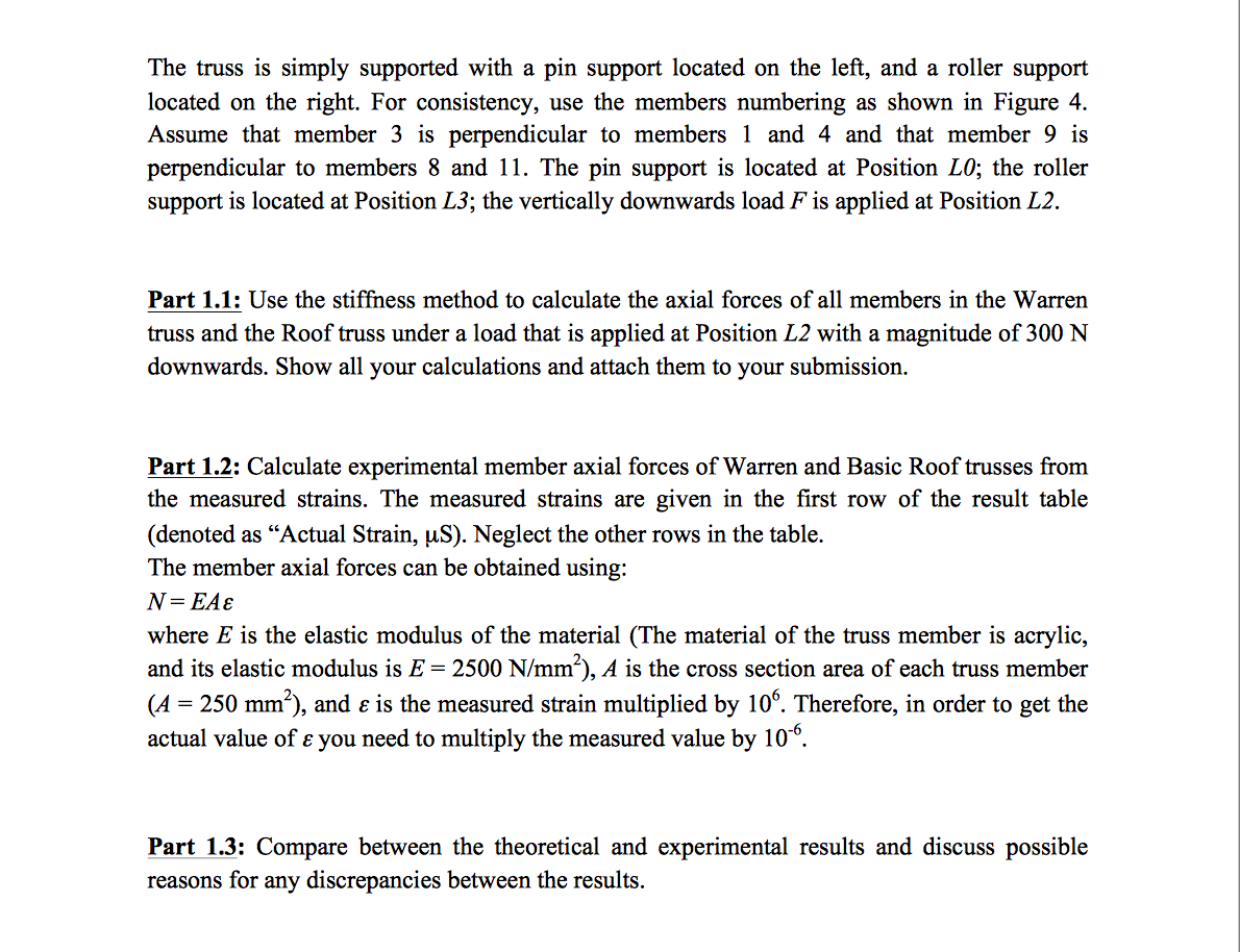 Please calculate axial forces of a Warren truss and a basic Roof truss subjected using the stiffness method. Thank you
