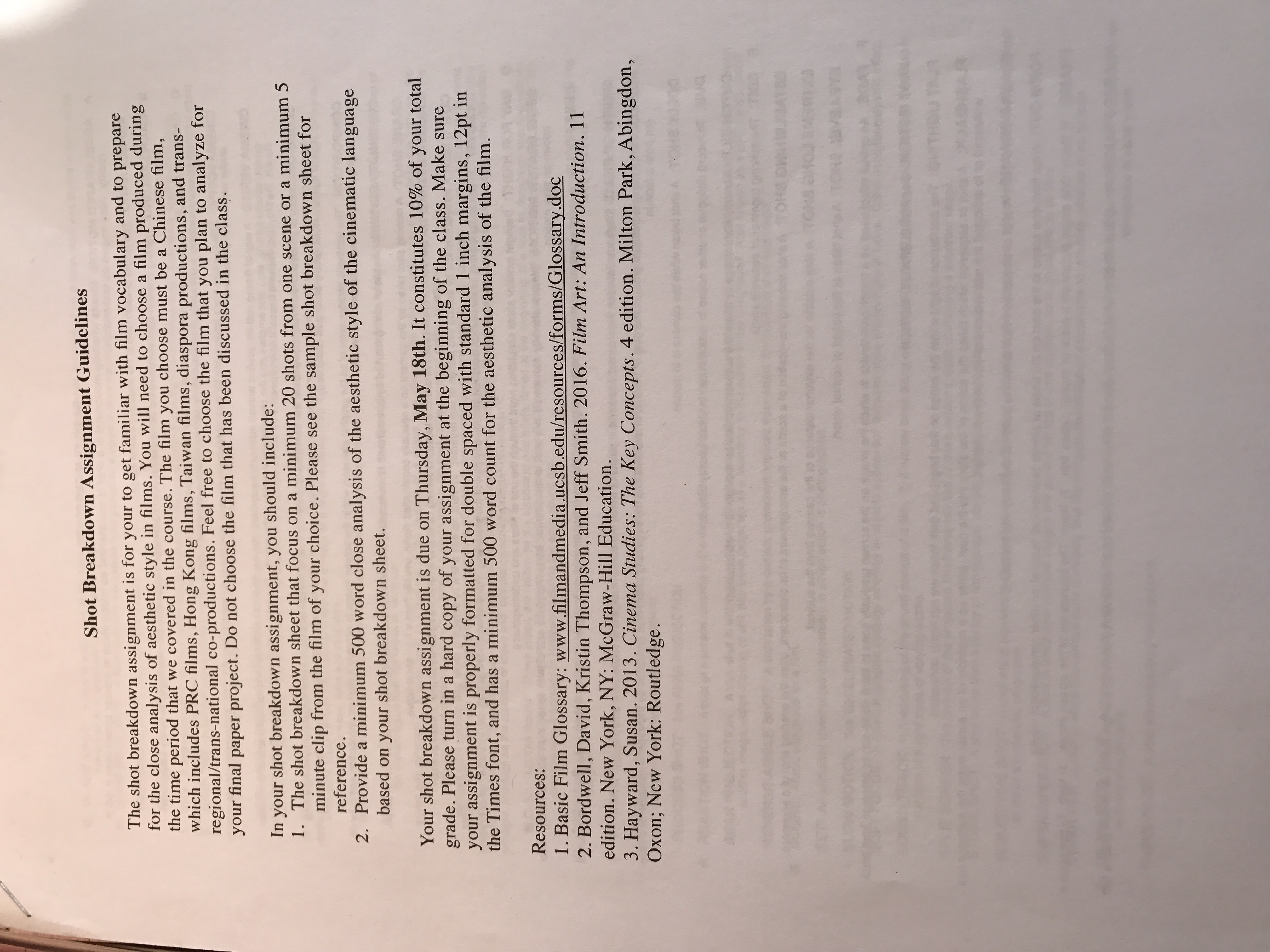 Overall, it is an assignment to get familiar with film vocabulary and prepare for the close analysis of aesthetic style in films for the final project.