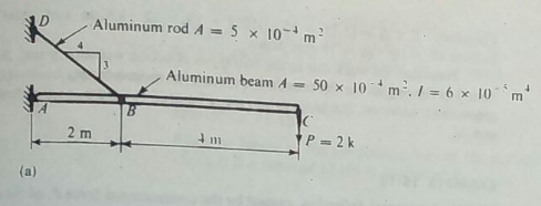 As shown in the figure below, find the downward deflection of the end C caused by the applied force of 2 kN in the structure. Neglect deflection caused by shear. Let E = 7 x 107 kN/m2.