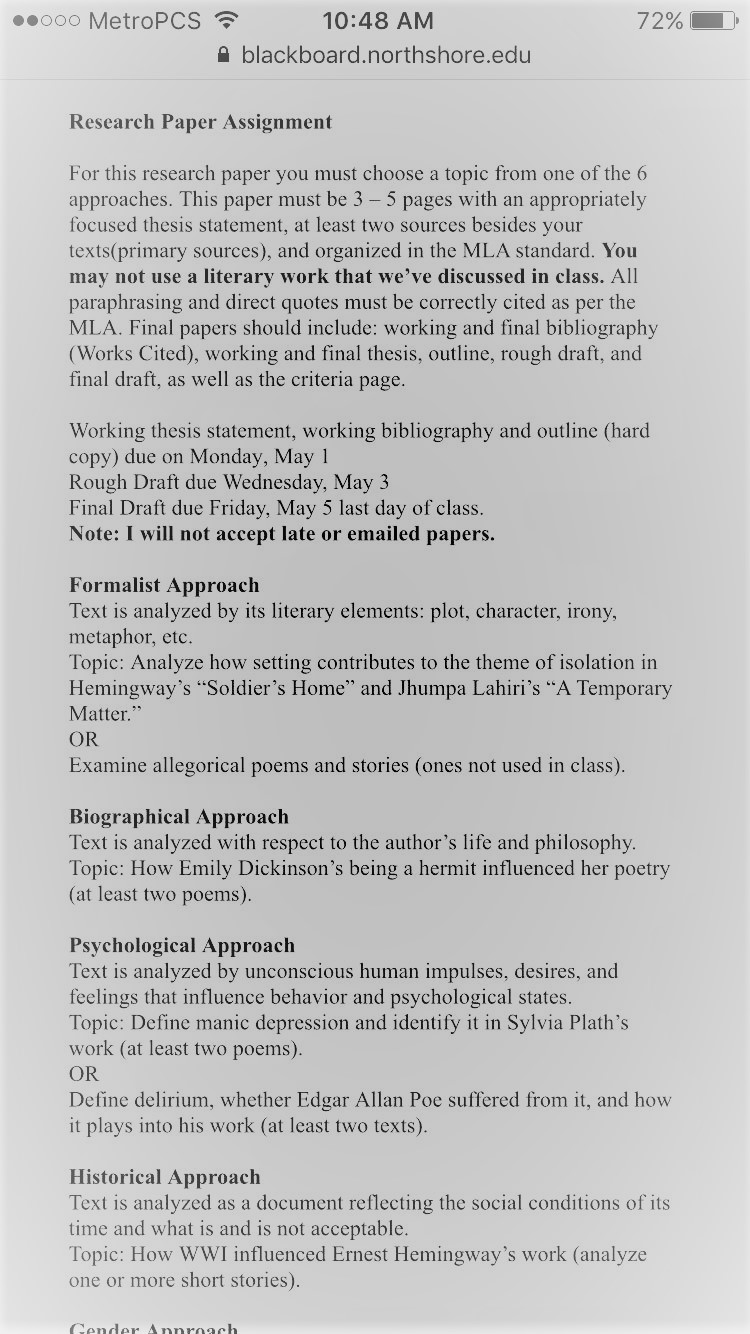 fl blackboardnorthshoreedu Gender Approach Text is analyzed in terms of the masculine andfor feminine themes.