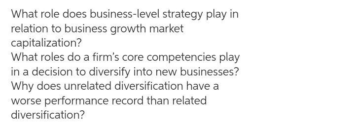 play in a decision to diversify into new businesses? Why does unrelated diversification have a worse performance record than related diversification?...